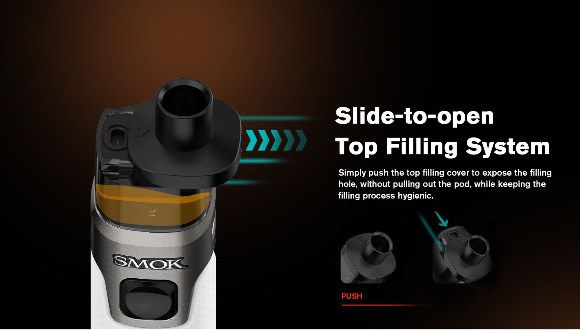 The new mesh technology is adopted to enhance the flavour more efficiently, and due to the enlarged meshed surface there are more clouds produced. The distinctive feature is the slide-to-open top fill and child-resistant pod design, which prevents and leakages. There is adjustable stepless airflow control so you could choose your preference.