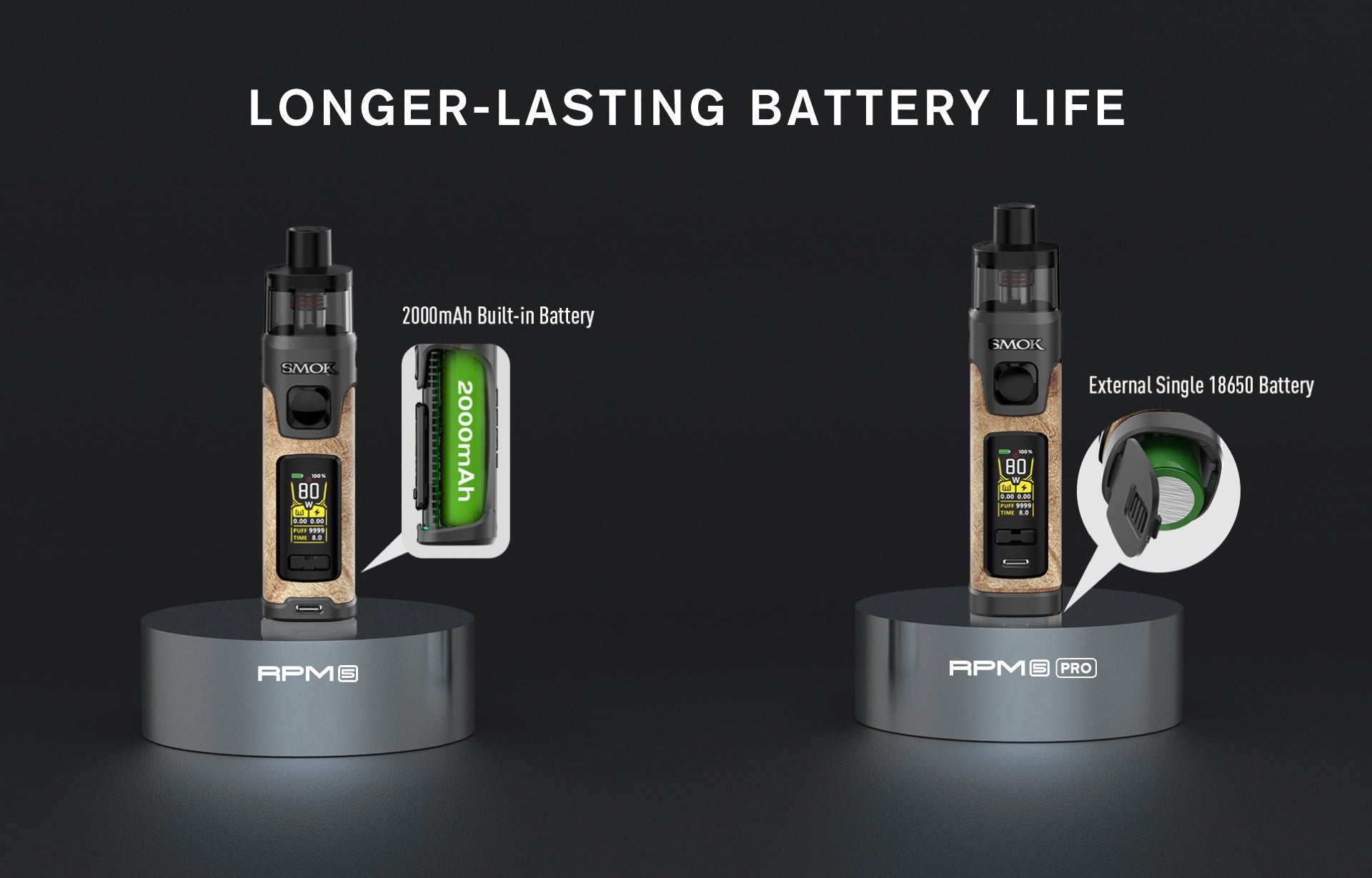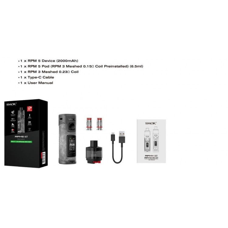 Smok RPM 5 Pod Mod Kit is powered by a 2000mAh integrated battery and fires up to 80W.